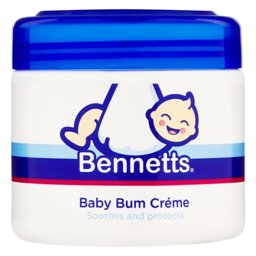 Bennetts Baby Bum CrĆ©me is formulated in a water-repellant base forming a barrier between the wet nappy and babyās skin.