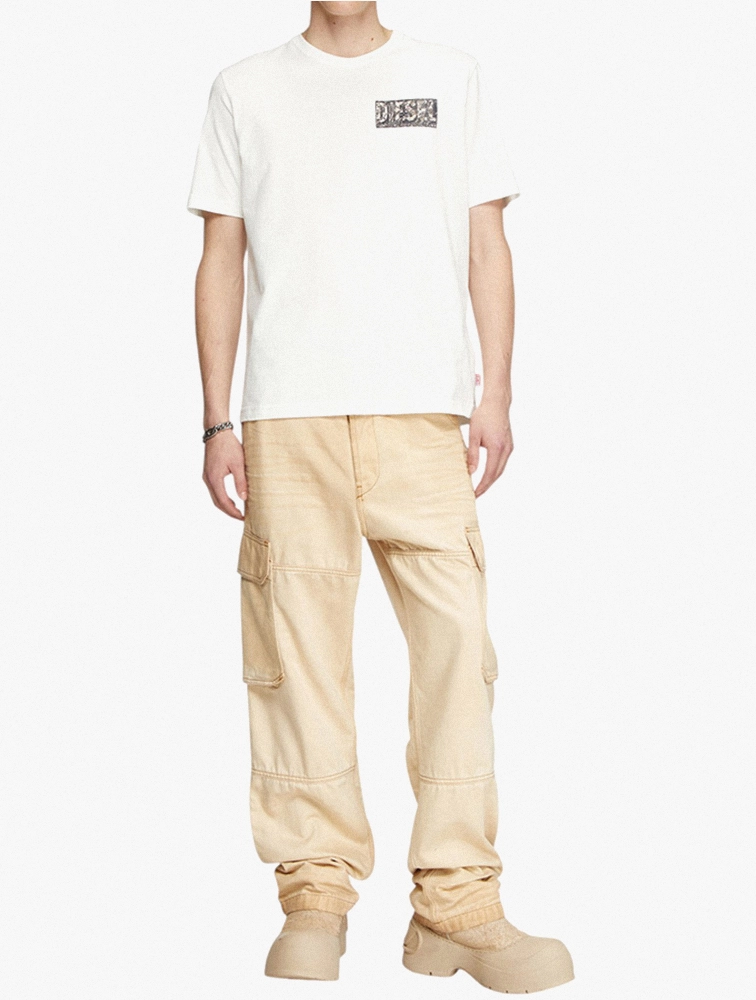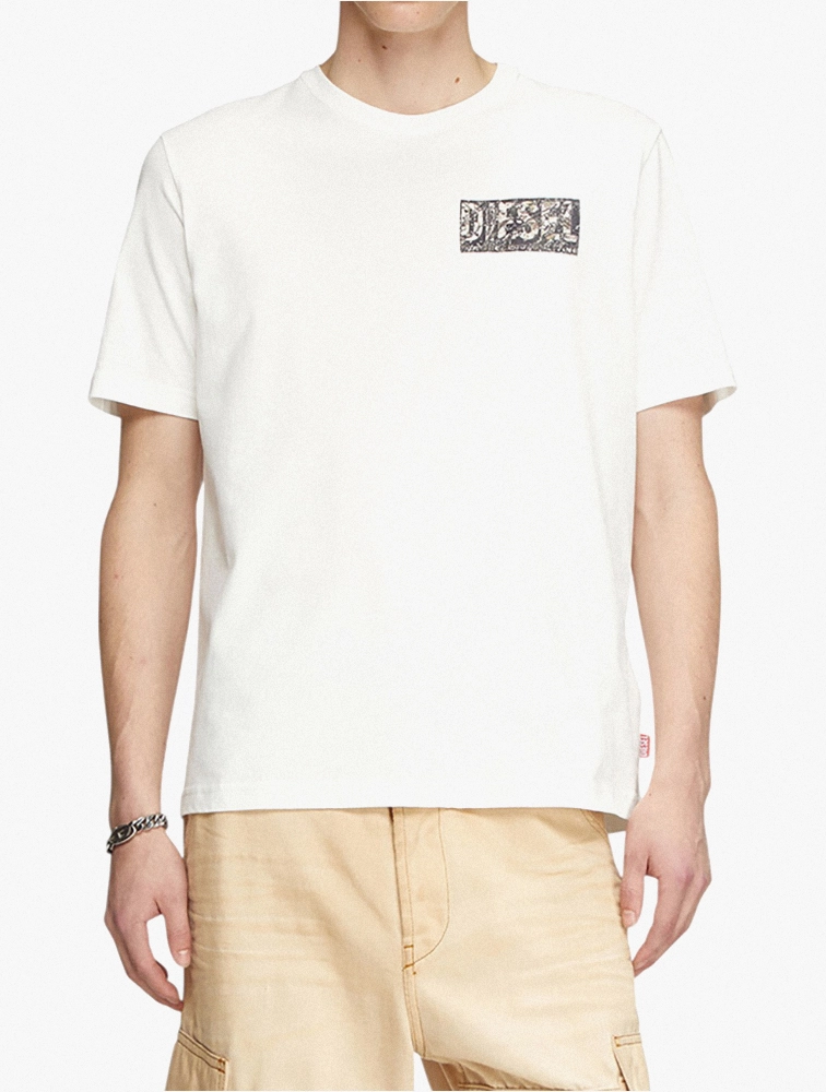 Diesel White Gabardine Patch Logo Crew Neck T-Shirt