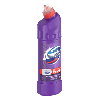Protect your home and family with the unique germ-fighting properties of Domestos Lavender Multipurpose Stain Removal Thick Bleach Cleaner. Specially formulated to be long-lasting and highly effective, Domestos bleach kills all known germs. If you want to keep your family safe from germs and your home looking clean, fresh and welcoming, choose Domestos cleaning products. The reliable extended power bleach cleaner and sanitizer is safe to use on almost all household surfaces, both indoors and outdoors. You can keep your floors, walls, toilet bowl, patio and more clean, sparkling and germ-free with Domestos Multipurpose Bleach. It’s the best way to keep your home or workplace hygienic, clean and free of germs. When you use Domestos bleach, it’s easy to keep your family healthy and protected from germs. This Domestos Multipurpose Thick Bleach has been formulated to disinfect, fight germs and keep surfaces brilliantly clean and shining. Domestos Multipurpose Bleach will also clean and prevent limescale build-up in your toilet bowl. It clings to the toilet bowl, even below the waterline, to provide an extra layer of sanitation protection. With Domestos, you get up to 3 times better stain prevention*, helping to keep your toilet bowl sparkling clean and hygienic for the whole family. *On limescale versus previous formulation.
