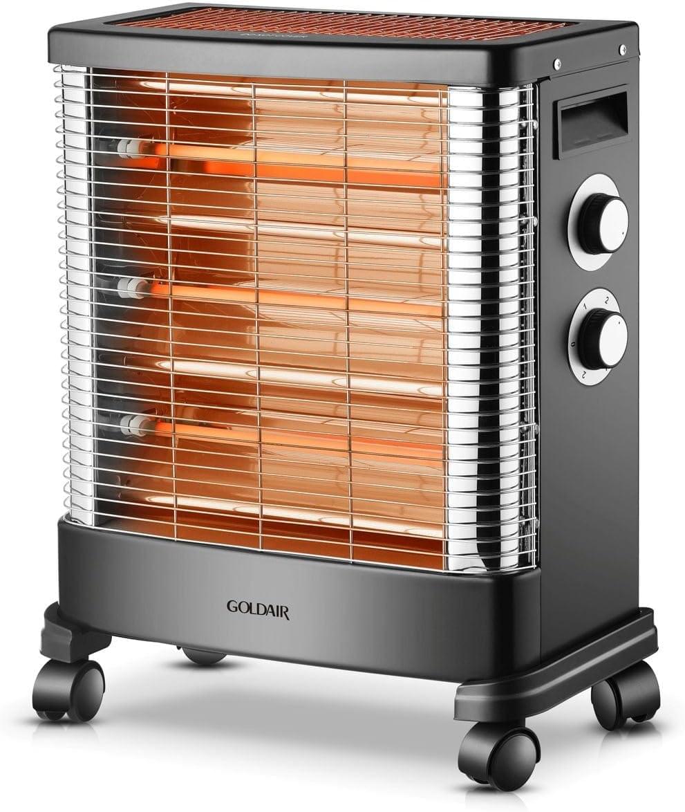 The Goldair 4 Bar Quartz Heater provides versatile heating with four power settings: 600, 1200, 1800 and 2400 watts. It ensures efficient warmth with rapid heating capabilities to quickly raise room temperatures. Safety is emphasised with built-in tip-over protection, automatically shutting off if tipped over. Its wheels enable easy movement between rooms, offering hassle-free relocation.