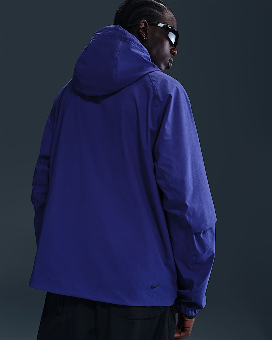 Crafted from stretchy, breathable material, the Nike Tech Woven Jacket offers you ease of movement and adjustable details. Bungee cords with cord locks create a custom fit at the hem and hood.