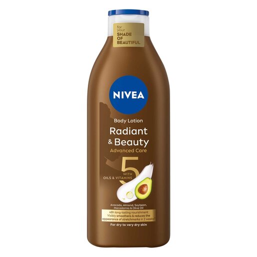 Wear your beautiful skin with Pride. Try NIVEA Radiant & Beauty Advanced Care body lotion. Visibly smoothens and reduces the appearance of stretch marks in 2 weeks. It gives you 48-hour long-lasting nourishment for dry skin and ashy skin.